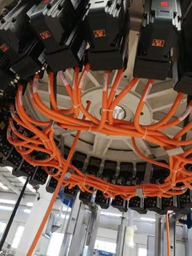為了讓每個(gè)托盤都可以適應(yīng)于各種瓶型,托盤均采用伺服電機(jī)進(jìn)行角度和位置的調(diào)整-在機(jī)器上,多達(dá)30個(gè)甚至60個(gè)伺服系統(tǒng)來進(jìn)行定位控制。由于機(jī)器空間緊湊,因此,采用了貝加萊的“背包電機(jī)”—它將伺服驅(qū)動(dòng)器和電機(jī)集成于一體的ACOPOSmotor,它體積小,且支持多圈絕對(duì)值編碼器,記憶多圈位置。